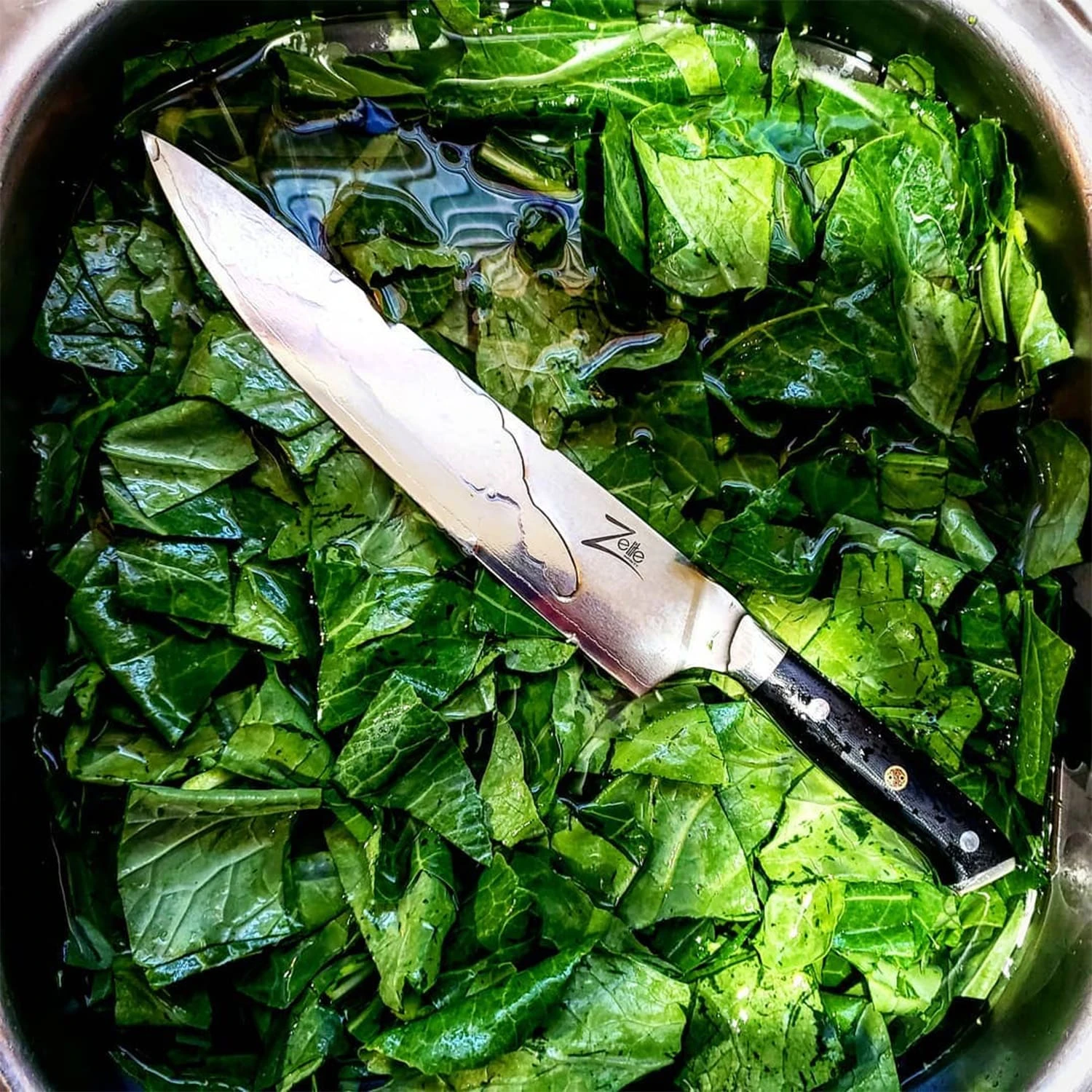 Das 10″ Chefkochmesser ist ein Hundertsassa der Alpha-Royal Japanese Serie von Zelite Infinity by Klarstein. Dank seiner Vielseitigkeit ist es ein geschätzter Generalist im täglichen kulinarischen Geschehen. Seine exklusive Charakteristik entsteht insbesondere durch den gebogenen Bauch, kombiniert mit einem glatten, konisch zulaufenden Kropf und einer ultrascharfen Spitze. So gelingt auch der unter Spitzenköchen so beliebte Kneifgriff mit schnellen, wippenden Schneidebewegungen. Aufgehoben mit der breiten Klinge landen geschnittene Zutaten schnell im Kochtopf, ohne am Messer zu kleben. Wie ein Chefkoch wirst du mit ihm Hacken, Schneiden oder Würfeln und dieses Kochmesser nicht mehr aus der Hand legen wollen!