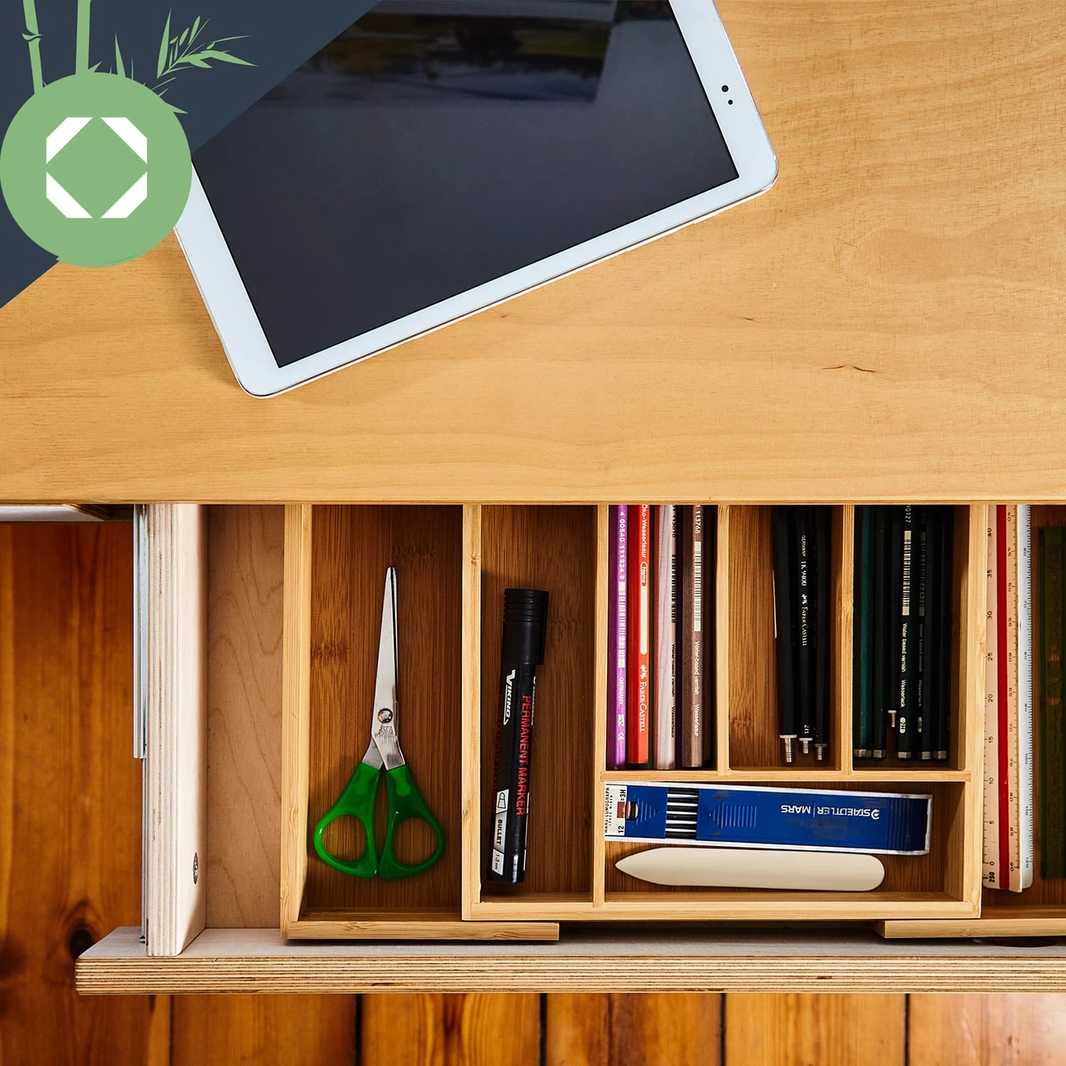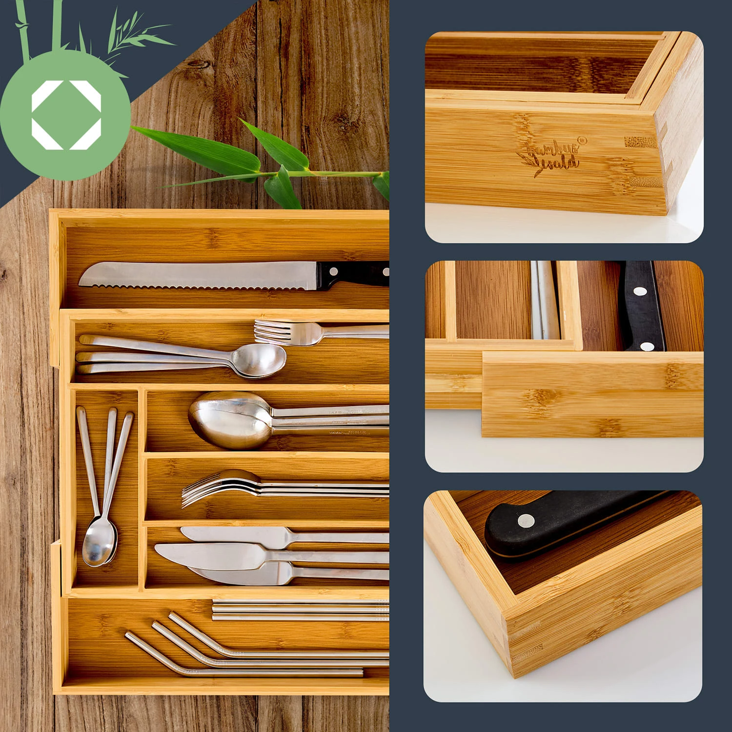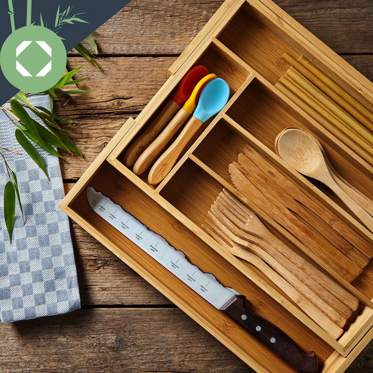 Modernes Schubladeninlet mit Anpassungsfähigkeit: Der Klarstein Besteckkasten aus nachhaltigem Bambus.