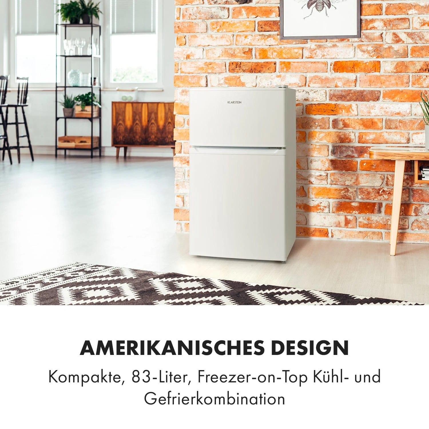 Stay cool! Die Klarstein Big Daddy Cool Kühl-Gefrier-Kombination mit einem Gesamtfassungsvermögen von 87 Litern bringt Ordnung und Übersichtlichkeit in die Frischhaltung der Lebensmittel.