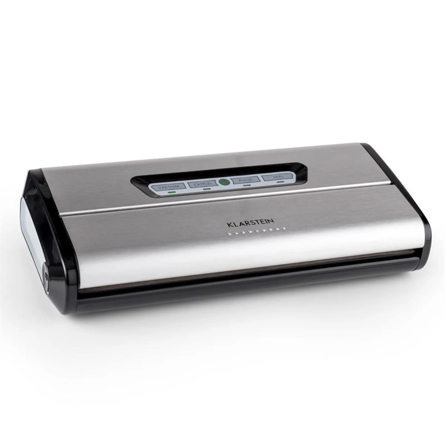 Mit einer Saugkraft von bis zu -0,8 bar und einer Sauggeschwindigkeit von ganzen 16 l/min vakuumiert und versiegelt der Foodlocker der Marke Klarsteinper Knopfdruck vollautomatisch und beendet nach verrichteter Arbeit den Prozess ganz von selbst. Für druckempfindliche Lebensmittel wie Obst, Flüssigkeiten und Gewürze gibt es aber auch die Möglichkeit kontrolliert manuell per Knopfdruck zu vakuumieren.