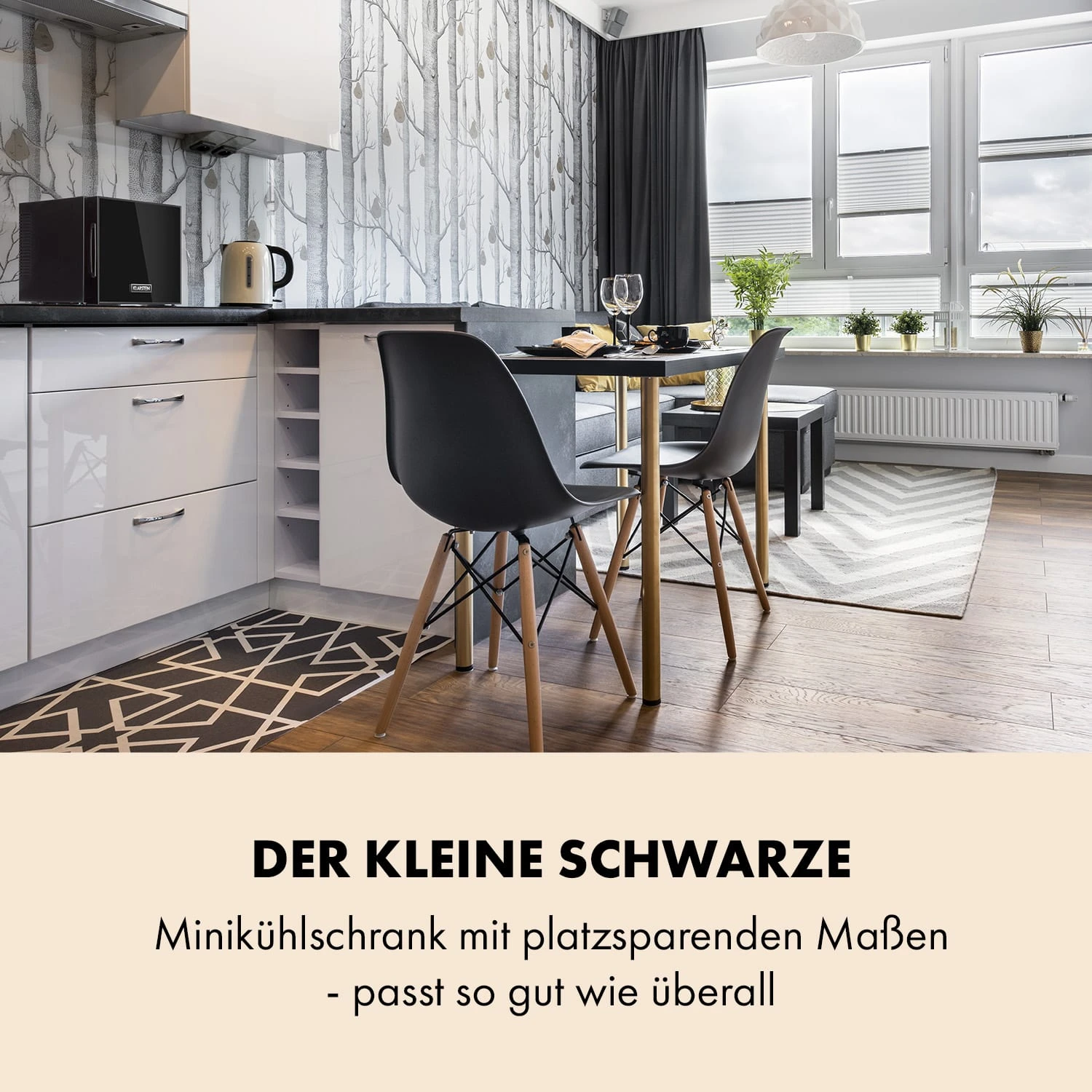 Der kleine Schwarze Klarstein Frosty Minikühlschrank sorgt für kühle Frische.