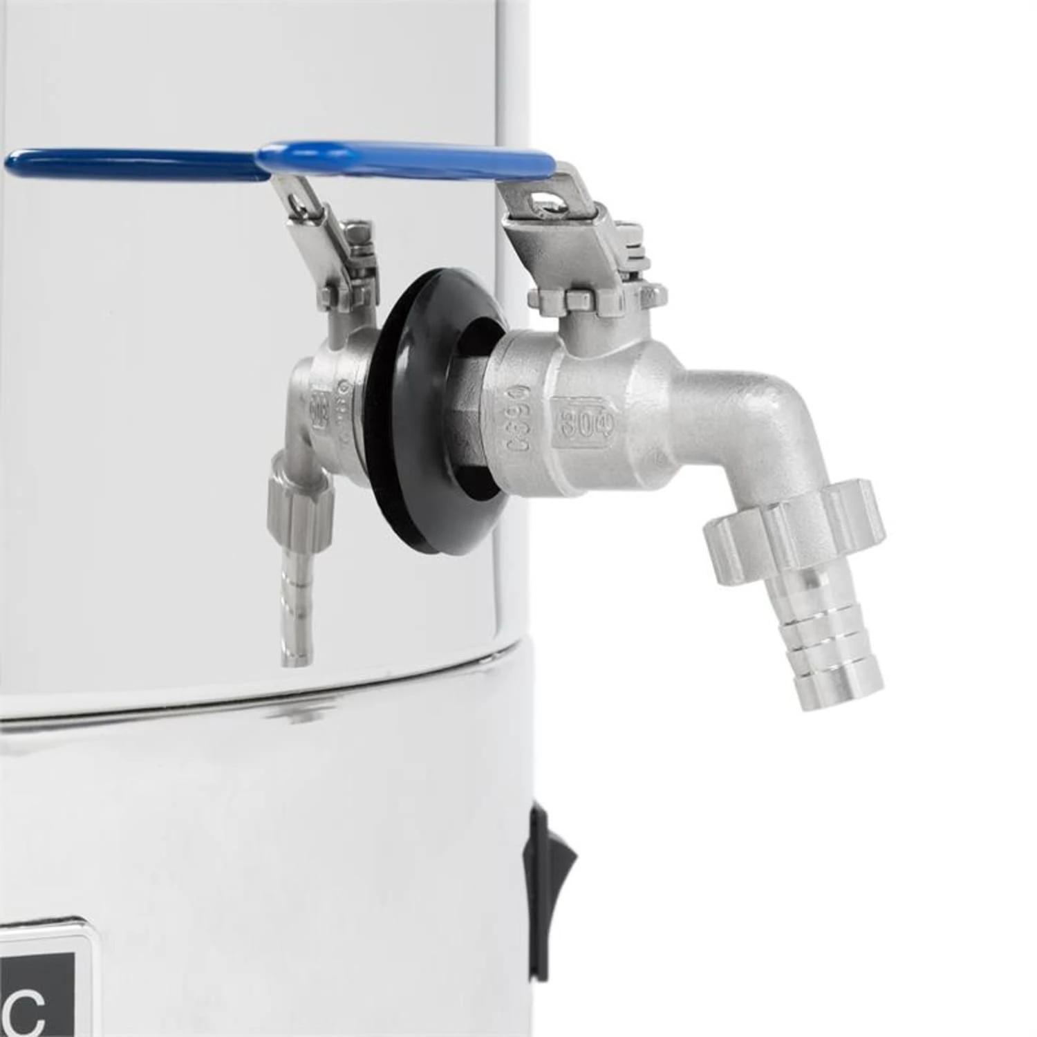 Besonders praktisch gestaltet sich auch das Umfüllen der fertigen Maische. Dafür verfügt die Klarstein Füllhorn Bierbrauanlage über einen Siebbodeneinsatz aus hygienischem 304er-Edelstahl sowie einen Ablasshahn mit Schlauchfilter. So wird der Treber ganz einfach aus der Vorwürze entfernt. Damit keine fremden Geschmäcker das Bier verderben, sind alle Teile sind aus 304er-Edelstahl gefertigt. Die doppelte Wand des Kessels sorgt für eine effiziente Verteilung der Hitze und hält sie besonders gut im Inneren. Damit auch das Auge Freude am Bierbrauen hat, ist die Außenseite des Kessels spiegelblank poliert.