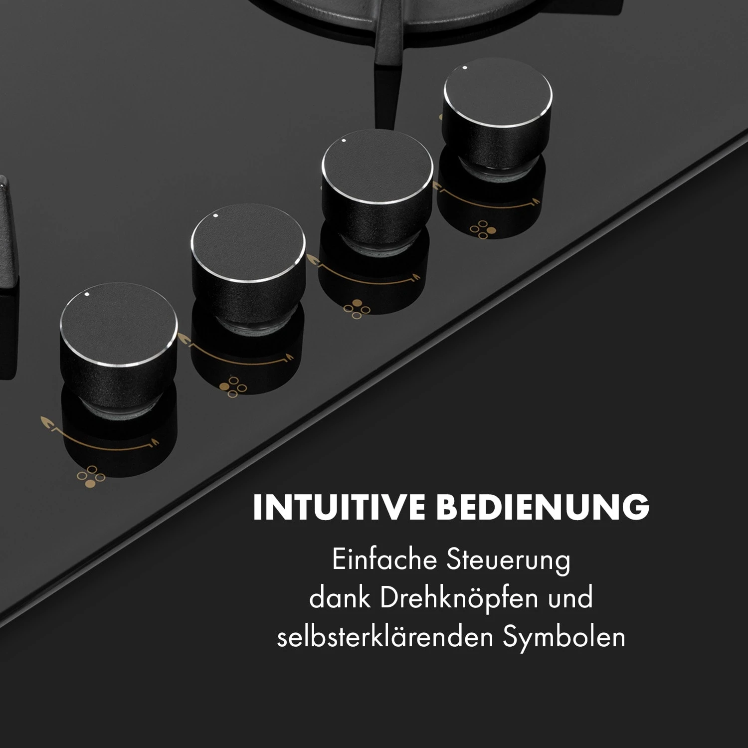 Nach dem Kochen kann das Gaskochfeld bei Bedarf ganz einfach gereinigt werden: Zu diesem Zweck besitzt es eine Oberfläche aus leicht zu säuberndem, 8 mm dickem, gehärtetem Keramikglas in Schwarz. Das sieht nicht nur unglaublich edel aus, es ist auch wunderbar pflegeleicht.