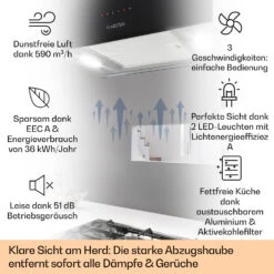 Antonia Dunstabzugshaube Kopffrei 60cm 350m³/h Touch-Bedienfeld Glas