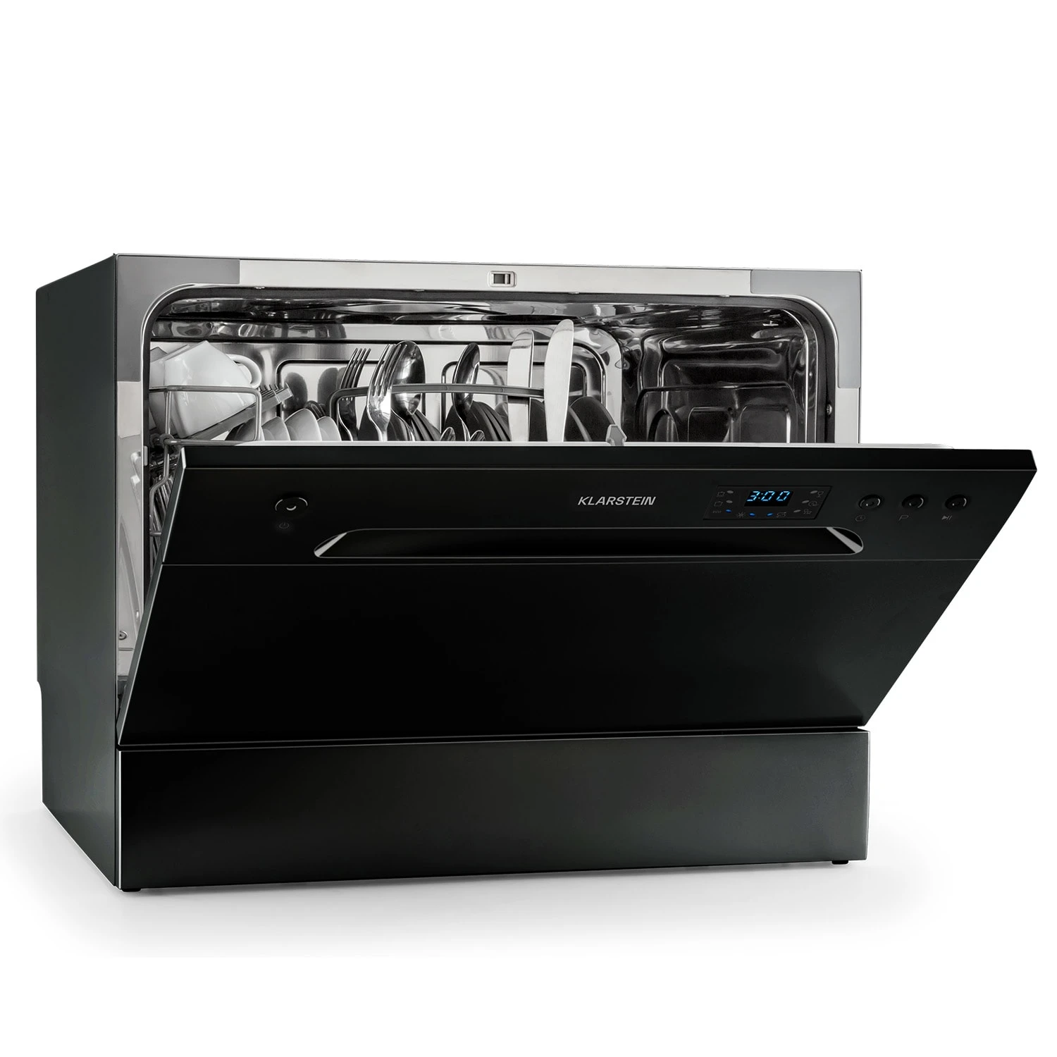 Die Klarstein Havasia UV 8 Geschirrspülmaschine ist eine überzeugende Reinigungshilfe mit vielen nützlichen Funktionen! Bis zu 8 Maßgedecke finden in ihrem Inneren Platz. Mit 1620 Watt Leistung und sechs unterschiedlichen Programmen bringt die Havasia UV 8 verschmutztes Geschirr wieder zum Glänzen. Alle Programme lassen sich schnell und einfach über die aufgeräumte Armatur mit drei Tasten einstellen. Mit automatischer Türöffnung und integriertem UV-Licht für besonders effiziente Säuberung und sparsames Trocknen erleichtert sie zuverlässig deinen Alltag. Eine eingebaute Halterung ermöglicht auch die unkomplizierte Reinigung von Wein- oder Sektgläsern. Die Havasia UV 8 ist als Einbaugerät oder als freistehender Geschirrspüler nutzbar.