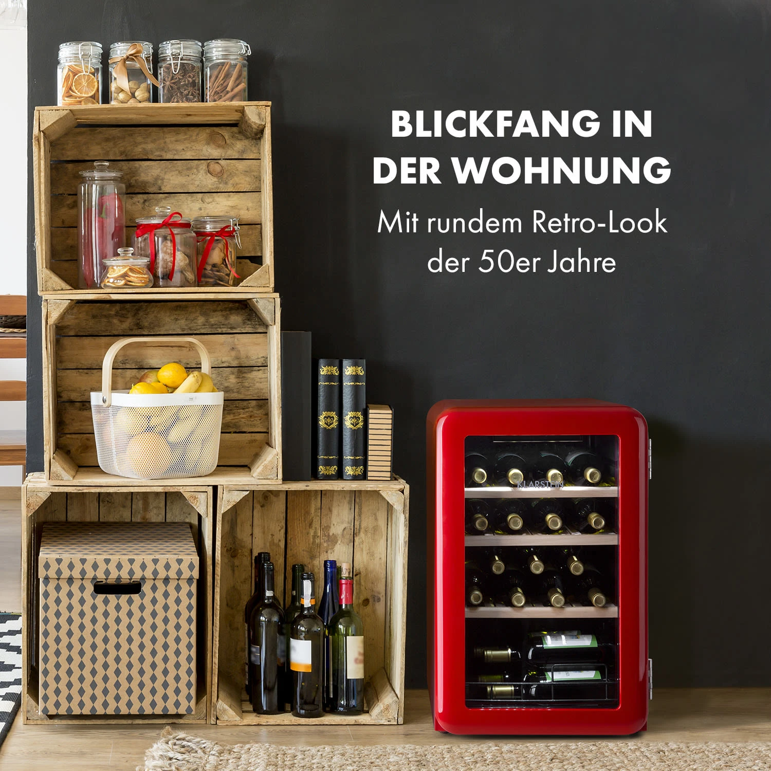 Retro-Design trifft angenehm kühlen Trinkgenuss: Der Retro-Weinkühlschrank Vinetage 19 Uno von Klarstein kühlt und lagert Weine optimal und stilvoll.